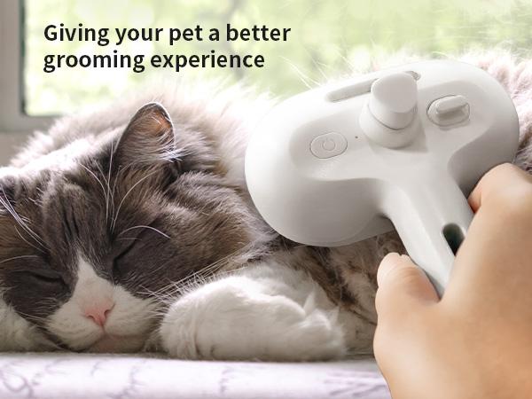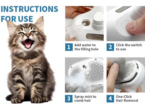 - 【Cat Steam Brush】Experience a comfortable grooming session with our mist spray function. Simultaneously spraying while grooming reduces static and flying hairs, making the process more comfortable and seamless. This helps to minimize tangling and knotting issues. You can add conditioner or softening agents to the spray, enhancing your cat's hair softness and shine. 【Note】Our cat brush only turns water into mist, not heating water into hot vapor.